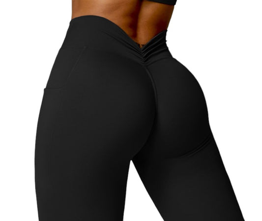 Elevate your fitness wardrobe with our irresistible low rise back leggings. The low-rise design offers a flattering silhouette while providing ample coverage and support. Equipped with strategically placed pockets, these leggings keep your essentials close at hand, whether you're storing keys, cards, or your phone during your workout sessions or daily activities. Available in different colors!